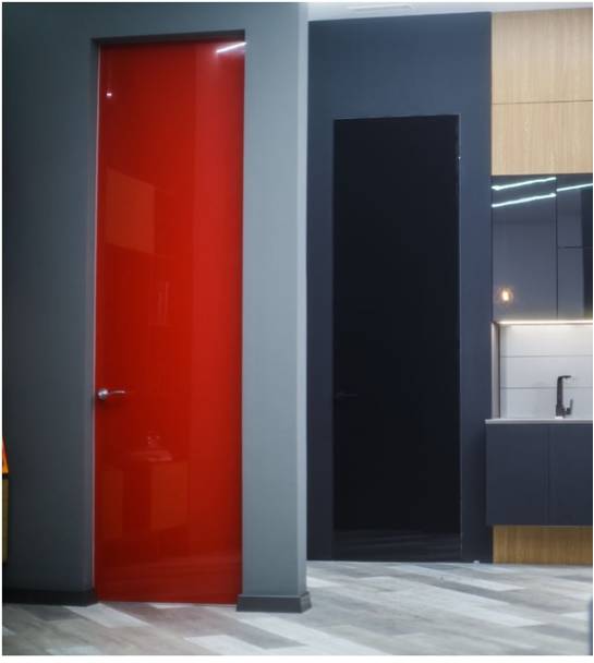 Использование таких дверей позволяет визуально увеличить пространство в помещение. Поэтому они в первую очередь рекомендованы для небольших комнат или непропорциональных помещений.